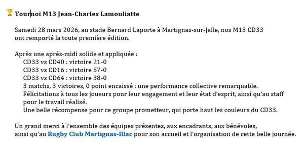 - CD 16-64-40-33 Trophée JC LAMOULIATTE samedi 28 mars 2026 Martignas (33) Programme